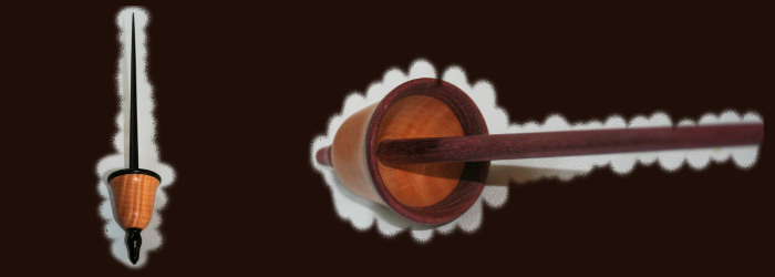 With a Tulip or as I like to think a ‘Tibetan bell’ shape whorl these spindle just keep spinning. For the bell I have selected some very pretty ripple Sycamore and added a cap/rim of select exotic hard wood. The shape of the bell shows the ripple to great effect. The addition of the heaver hard wood on the rim of the bell not only looks good and enables an exotic wood to be used with minimal environmental impact but helps with the spin.